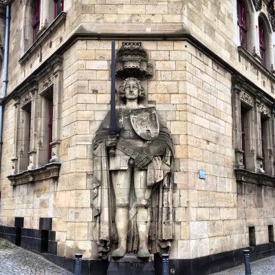 Schnell ließ ich den unbestritten hässlichen Hauptbahnhof hinter mir und spazierte an belangloser Nachkriegsbebauung vorbei zur vorgeblichen Altstadt. Eine Shopping Mall namens Königsgalerie markierte dann so etwas wie die Grenze zum historischen Duisburg. Nachdem ich die Galerie durchquert hatte, stand ich vor dem Alten Postamt. Das sah ganz okay aus und die Türme vom Rathaus und der Salvatorkirche waren nur noch einen Katzensprung entfernt. Das Ensemble kann man sich mal geben, auch wenn es natürlich keine Sehenswürdigkeiten von nationalem oder gar internationalem Rang sind.