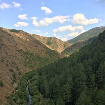 Nach der Grenze durchquerte der Zug die Durmitorkette (über 2.000 Meter hohe Berge) und die Blicke aus dem Zug hinaus den Hang hinunter waren nichts für Menschen mit Höhenangst. In Kolašin wurde schließlich der höchstgelegene Bahnhof und kurz danach der Scheitelpunkt der Strecke erreicht (1.032 Meter ü. NN). Ab hier ging es wieder aus dem Gebirge abwärts (teilweise Gefälle von bis zu 25 %). Beim Splitten der Tour, würde ich hier (Kolašin) wohl den zweiten Zwischenstopp machen. Denn die Stadt ist ein schöner Luftkurort in den Bergen und am Biogradska Gora Nationalpark gelegen, wo man einen der letzten Urwälder Europas finden kann.