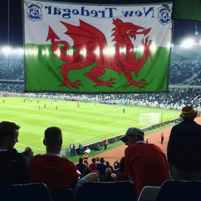 Egal, genießen wir das Hier und Jetzt. 18 Uhr war durch und die meisten Waliser brachen mit den vom Verband gecharterten Shuttlebussen zum Stadion auf. Unsere neuen Freunde tickten aber wie wir. „Was sollen wir jetzt schon im Stadion, wenn man auch noch ’ne Stunde hier Bier trinken kann?“ Ein paar Trikotträger aus Südwales blieben ebenfalls und man rückte zusammen. Sie tranken komischerweise Champagner, was sie sich letztes Jahr in Frankreich bei der EM angewöhnt haben wollen. Ein Typ von ihnen kam aus Caerphilly und wir tauschten uns erstmal über alle Pubs in der örtlichen Cardiff Road aus. Da wurden Erinnerungen wach an die Jahre 2012 bis 2016!
