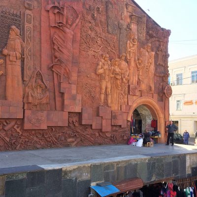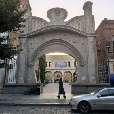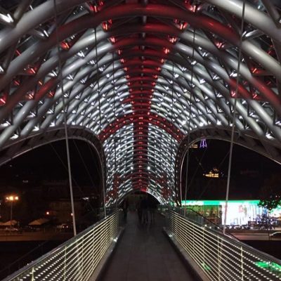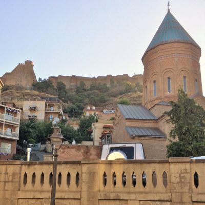 Als nächstes steuerten wir den Bäderbezirk Abanotubani an. Zeit für etwas Sprachkunde: Tbili ist das georgische Wort für warm und Tbilisi könnte man in etwa mit „Warme Quelle“ übersetzen. Diese Namensgebung verdankt Georgiens Hauptstadt seinen schwefelhaltigen Quellen, die seit der Stadtgründung rege genutzt werden. Abano heisst auf Georgisch übrigens Bad und ubani ist das Wort für Bezirk. In jenem Bezirk sind noch zahlreiche historische Schwefelbäder gut erhalten, deren Kuppelbauweise persisch anmutet. Die Illusion, sich jetzt bereits rund 1.000 Kilometer weiter südöstlich zu befinden, macht dann noch das schmucke Chreli Abano (Orbeliani-Bad) aus dem Jahre 1893 perfekt, welches im Stile einer persischen Madrasa gebaut ist, mit gefliesten orientalischen Mustern an der Fassade.