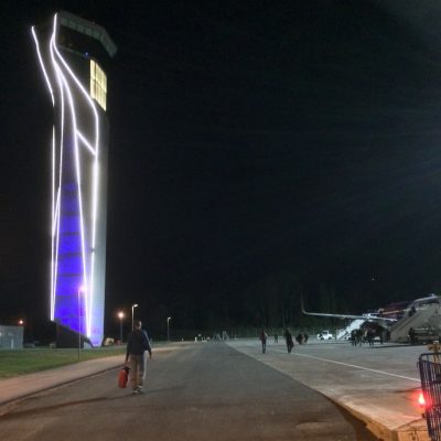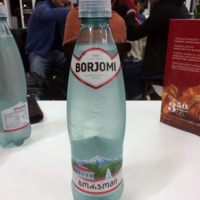 Da wir schon in aller Frühe zum Flughafen mussten, ging es gegen 22 Uhr zurück ins Hotel und bereits fünf Stunden später klingelte der Wecker. 3:30 Uhr brachen wir schließlich per Taxi zum Flughafen auf. 20 Lari für 25 km klang mehr als fair. Weil der Taxler am Ziel auch tatsächlich nur diese Summe haben wollte, gaben wir gerne noch ein üppiges Trinkgeld von knapp 50 %. Die verdammten Lari müssen schließlich endlich weg. Hätten wir nicht noch Frühstücken wollen, hätte er ruhig alles haben können. Aber so benötigten wir noch circa 20 Lari für das berühmte Mineralwasser Borjomi und diverse Teigwaren (Blätterteigtaschen mit Kartoffelfüllung und ein paar furztrockene Chatschapuri).