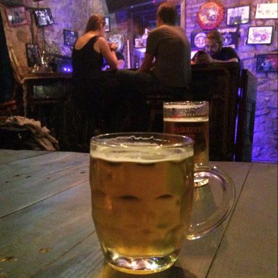 Getoppt werden konnte die Stimmung nur noch mit dem Besuch der Karaokenacht im Irish Pub (also doch noch Pub, hätte mich sonst auch stark gewundert). In dem gut gefüllten Schuppen, mit ebenso gut gefüllten Walisern, platzierten wir uns strategisch gut zur Karaokebühne. Um am Mic zu performen, musste man wie auf dem Amt ’ne Nummer ziehen und wurde dann irgendwann aufgerufen. Hier sangen nun Georgierinnen mit wirklich lieblichen Stimmen, die in erster Linie Liebeslieder ausgewählt hatten, sowie georgische Typen, die voller Inbrunst Songs wie „Wind of Change“ schmetterten. Der Song gehört glaube ich in der kompletten ehemaligen UdSSR zum gemeinsamen Musikerbe (ich bin sicher, die Rock-Opas aus Hannover würden in Georgien immer noch problemlos das Nationalstadion füllen).