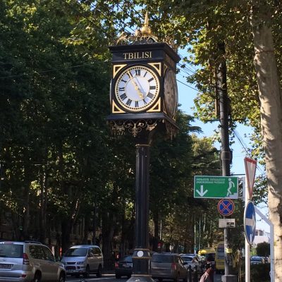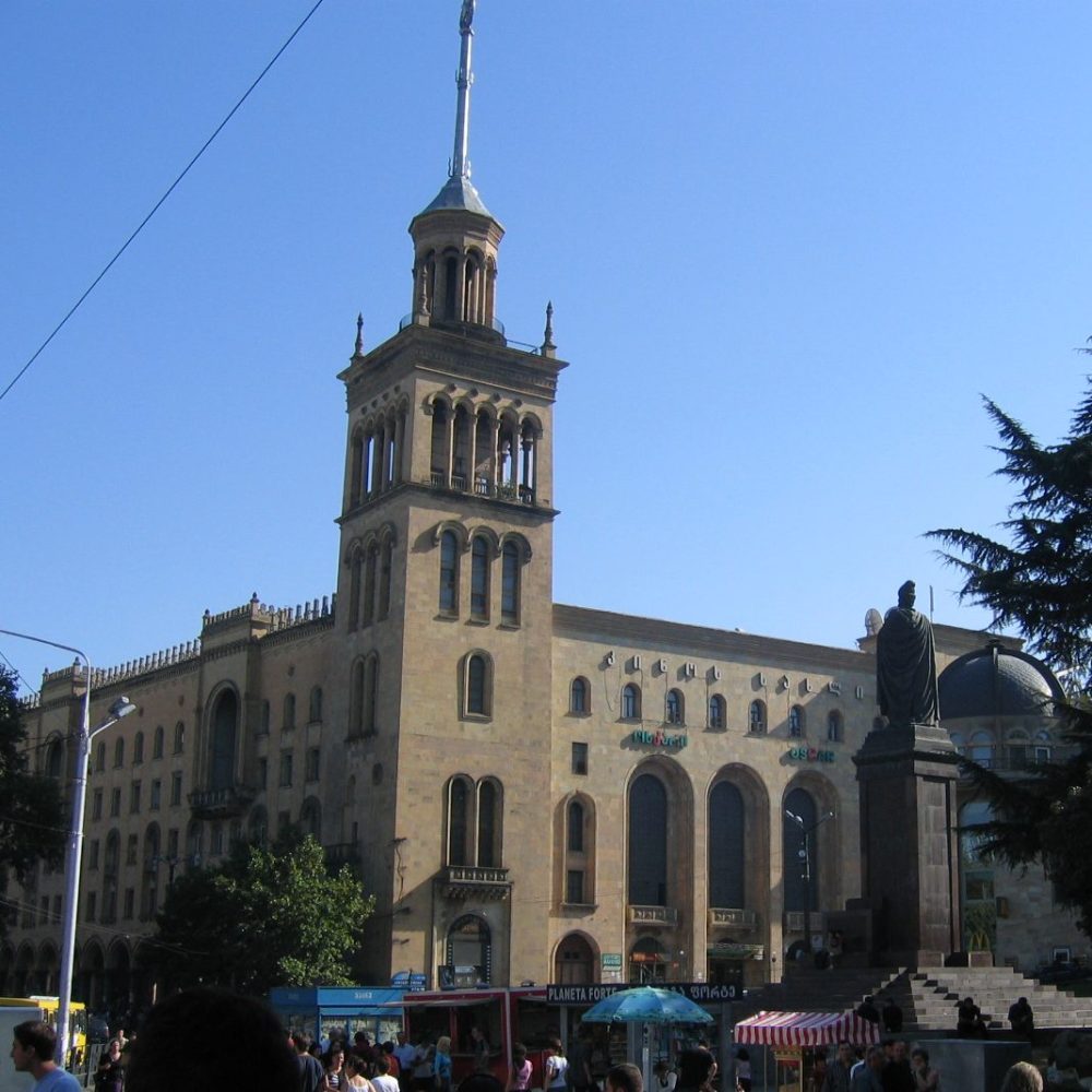 Also rein ins Pendlervergnügen und fix die fünf Stationen zum Untergrundbahnhof Rustaveli gefahren (witzigerweise genau das älteste Teilstück der 1966 eröffneten Metro Tbilisi). Die 120 Meter lange Rolltreppe dort – U-Bahnhöfe liegen hier sowjettypisch bis zu 60 Meter unter der Erde – warf uns an ihrem oberen Ende in einem hektischen Hauptstadttreiben heraus. Kurz am Respublikis Moedani (Platz der Republik) orientiert und dann den Straßenhändler- und Bettlerslalom zum Altbau unseres Appartements gestartet. Dieses war zentral, aber dennoch ruhig gelegen und die Einrichtung war einfach, aber ausreichend. Für umgerechnet 23 € war das ein guter Deal und die nette in der Nachbarwohnung lebende Vermieterfamilie dürfte mit 70 Lari ’ne Menge anfangen können.