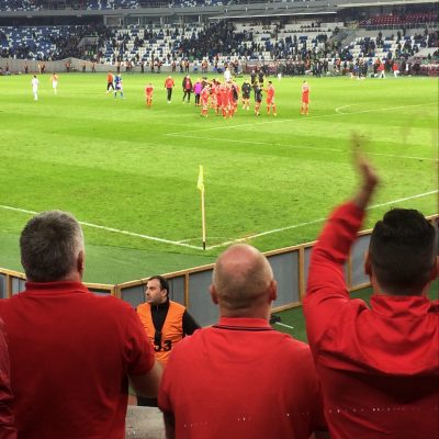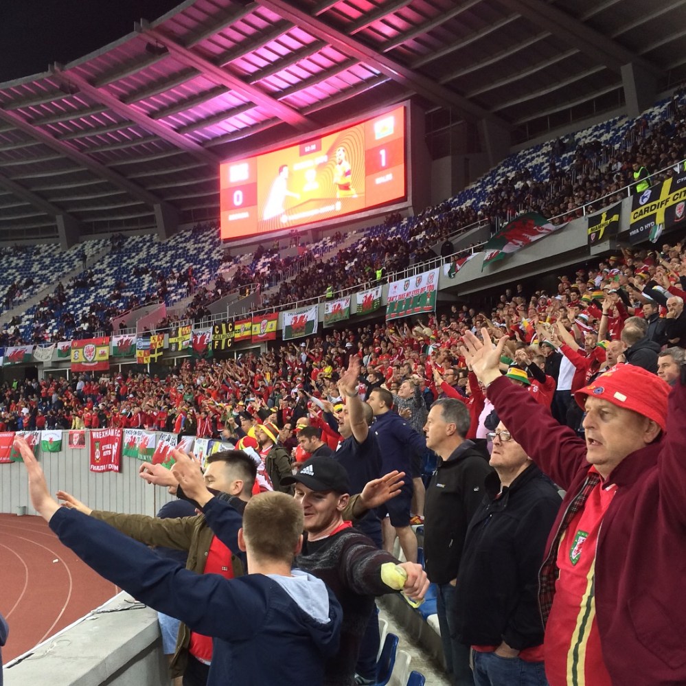 Das brutal laute „Don’t Take Me Home“ der Waliser war zwar der Soundtrack für zahlreiche weitere gute Chancen, aber die Verwertung blieb unbefriedigend und Georgien lauerte auf Konter im eigenen Stadion. Auch die georgischen Fans gaben ihr Team nicht auf. Der kleine, aber stets bemühte Fanblock – „Viel Bewegung, guter Armeinsatz, aber akustisch nicht zu vernehmen“, hätte man früher in deutschen Ultrà-Foren geschrieben – schaffte es mittlerweile, dass der Rest des Heimpublikums nicht nur mit Smartphonelichtern und nervigen Vuvuzelas für Stimmung sorgen wollte, sondern auch mit in die Anfeuerungsrufe einstieg. Erst recht nachdem uns in der 80.Minute fast das Herz stehen blieb. Flügelflitzer Merebashvili brachte einen gefährlichen Schuss auf’s Gästetor, den Ashley Williams auch noch unglücklich abfälschte. Aber irgendwie kam Hennessey noch mit den Fingerspitzen an den Ball und verhinderte Schlimmeres.