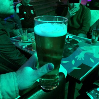 „Jungs, trinkt aus. Wir ziehen weiter.“ war uns als Ansage nach zwei Getränkerunden sehr willkommen. Ein weiterer Mob Waliser war in der Corner Bar, die, ihr ahnt es, gleich um die Ecke war. Erschreckenderweise auch eine Shisha Lounge, aber für die Waliser ist das wohl etwas Exotisches, was sie in so einem semi-orientalischen Land unbedingt mal machen wollen. In Wales gibt es jedenfalls kaum Shisha Bars und diese hier war im Gegensatz zur German Bar auch wirklich einladend. Es gab normales Licht anstatt dieses ungemütliche Neonlicht und es dröhnte auch kein R&B-Elektro-Gemisch aus den Boxen, sondern die Manic Street Preachers sangen „Together Stronger (C’mon Wales)“ und wir sangen mit. Hier ging nebenbei bemerkt ordentlich Bier über’n Tresen und richtige Fußballkneipenatmosphäre kam auf.