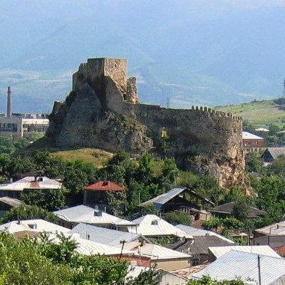 Die heutige Fahrt führte uns zusammen mit vielen Kühen und Hunden erstmal parallel zur Bahnstrecke Poti – Tbilisi – Baku (der älteste Schienenweg des Landes) durch die imeretische Gebirgswelt am Fluss Dzirula entlang. In Zestafoni war dabei ein größeres Fußballstadion zu erspähen (O-Ton Ole: „Der Ground wird auch noch weggescheppert“) und besonders die Kleinstadt Surami machte schon bei der Durchfahrt Lust auf einen richtigen Besuch eines Tages. Es gibt dort eine mächtig wirkende mittelalterliche Festung auf einem Felsen und natürlich diverse schöne alte Kirchen. Außerdem wirkt es wie die ideale Basis für ein paar Bergwanderungen.