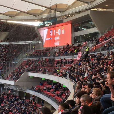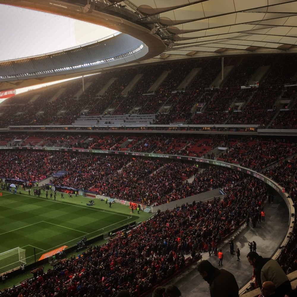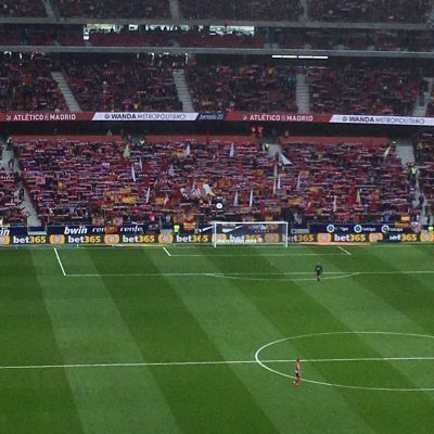 Schon vor dem Spiel fiel uns auf, dass Atlético nicht so ein Touristenmagnet wie der Ortsrivale Real zu sein schien. Nichtsdestotrotz hielt am Stadion neben uns ein Bus mit ostasiatischen Touristen, die alle fabrikneue Atlético-Parka trugen. Würde mich nicht wundern, wenn deren Reisepaket optional ein Real-Spiel inklusive Kostümierung enthalten hätte. Je nach Terminierung halt. Der moderne Fußball treibt eben die buntesten Blüten und wenn in diesen Tagen ein Hörgeräteakustiker aus Großburgwedel wieder mal mit Klage gegen die deutsche 50+1-Regel droht, wird wohl den meisten Traditionialisten so schlecht wie mir. Ich stehe nunmal auf Fußballvereine als Allgemeingut, anstatt als Privateigentum von Investoren bzw. als Erbmasse von Privatpersonen („Alexander, du als mein Erstgeborener bekommst mein Hörgeräte-Imperium. Und mein anderer Sohn, auch du sollst nicht leer ausgehen. Du bekommst Hannover 96 und alle dazugehörigen Beteiligungen“). Bei Atlético gehört übrigens ein chinesischer Konzern, der wie eine populäre österreichische Band heißt, zu den Investoren. Und die Namensrechte am Stadion haben die Chinesen einer Band namens Wanda auch gleich gesichert.