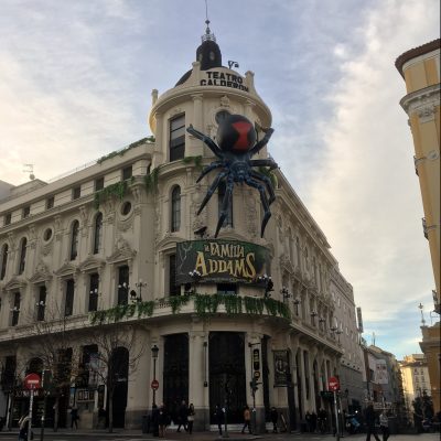Da Sektion Sitzfleisch die dortigen Stehplätze verschmähte, ließen wir das „Schinkenmuseum“ aber doch links liegen und kehrten an der Plaza de Jacinto Benavente ins As Jamoneria ein. War vom Angebot ähnlich wie ein Museo del Jamon, nur halt etwas hochpreisiger. Meine Freunde hatten Schinkenbaguettes zum Frühstückskaffee und ich entschied mich für sehr leckere Croquetas con Jamon Iberico (Schinkenkroketten). Die Kroketten wurden übrigens aus dem benachbarten Café geholt, aber wahrscheinlich gehörte die ganze Ladenzeile mit drei Lokalen sowieso einem Besitzer. Der Platz war nebenbei gesagt nicht besonders spektakulär. Architektonisch auffällig war nur das Teatro Calderon an der Südostecke. Deshalb bewegten wir uns nach dem Frühstück wieder zu den repräsentativeren Plätzen von Spaniens Kapitale, wovon uns die Puerta del Sol am nächsten war.