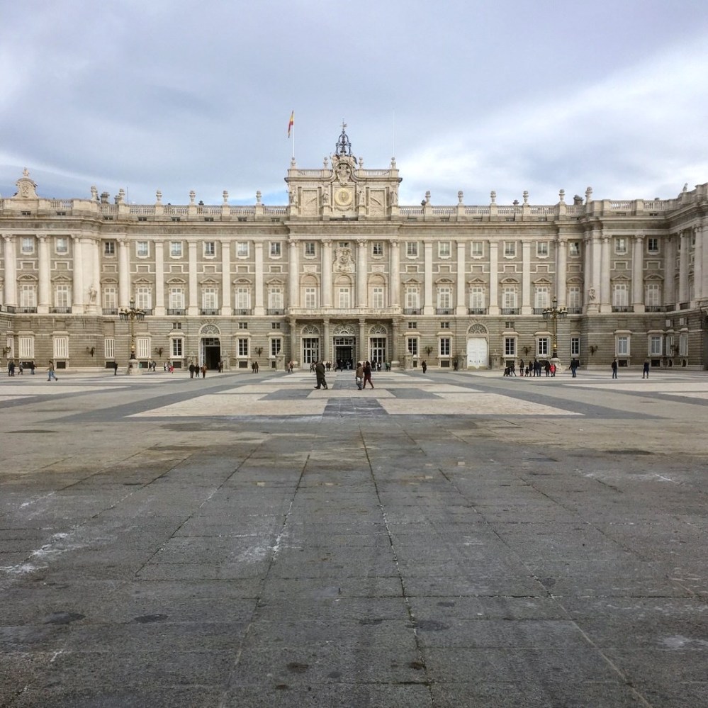 Wir linsten natürlich auch rüber zum erwähnten Palast und informierten uns über die Geschichte des barocken bis klassizistischen Prunkbaus. An Stelle des Palacio Real befand sich früher eine maurische Festung (Alcazar), die nach der Reconquista ab dem 11. Jahrhundert von den spanischen Königen zeitweise bewohnt wurde. Nachdem der Alcazar 1734 durch einen Brand zerstört wurde, beauftragte der damalige König Felipe V de España (Philipp V.) einen prunkvollen Neubau. Dieser Philipp war nach dem spanischen Erbfolgekrieg der erste Bourbonne auf dem spanischen Thron und sein Palast sollte dem berühmten Escorial der Habsburger Vorgängerdynastie (vor den Toren Madrids gelegen) mindestens ebenbürtig sein. Daher wurde nun ein Schloss mit vier Flügeln nach dem Vorbild des Pariser Louvre errichtet.