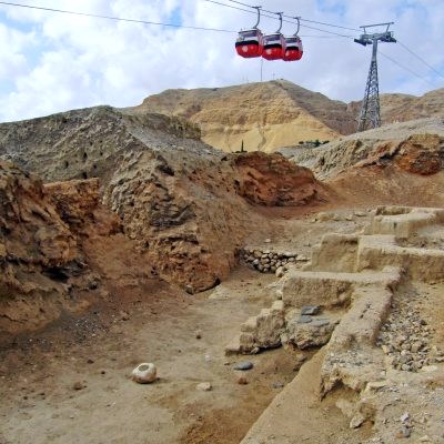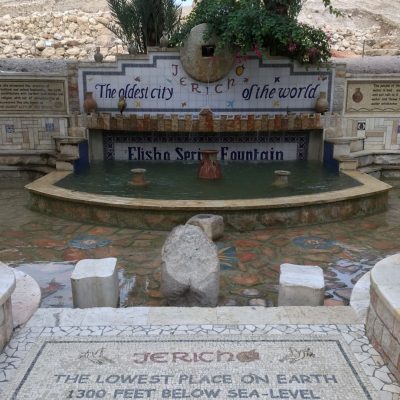 Wir ließen uns nun runter zu Jerichos archäologischer Ausgrabungsstätte namens Tell-es-Sultan fahren. Dabei stoppten wir an der Elishaquelle und nahmen Jerichos Behauptungen zur Kenntnis, sowohl die tiefstgelegene, als auch die älteste Stadt der Welt zu sein. Mag beides stimmen. Jedenfalls ist Jericho bereits seit 11.000 v. Chr. besiedelt. Die ältesten Stadtmauerreste sollen von ca. 8000 v. Chr. sein. Zwischen ihnen konnte man nun für 10 Shekel rumturnen. Auch das mit der tiefstgelegenen Stadt scheint zu stimmen. Ich konnte keinen Ort finden, der 250 Meter unter NN unterbieten kann. Außerdem ist der Ort noch aufgrund einer alttestamentarischen Bibelgeschichte berühmt; den Trompeten von Jericho! Deren Töne sollen die Stadtmauern zum Einsturz gebracht haben, als die Israeliten unter Moses-Nachfolger Josua die Stadt eroberten. Historizität natürlich wie immer fragwürdig, aber einen wahren Kern hat die Geschichte eventuell.