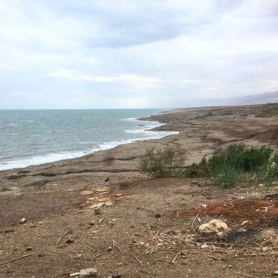 Durch die Judäische Wüste fuhren wir gen Totes Meer. Neben der faszinierenden Wüstenlandschaft, gab es den Geschlechtsakt vollziehende Esel auf dem Seitenstreifen zu sehen und außerdem viele Dromedare am Wegesrand. Letztere waren aber schon längst gezähmt und standen an gefühlt jeder Ecke für Touristen zum Reiten und Posieren zur Verfügung. Wir erreichten irgendwann Höhenmeter Null und ab da ging es unter den Meeresspiegel. Am Ende waren es über 400 Meter unter Normalnull. Willkommen am tiefsten Punkt des irdischen Festlands!