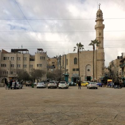 Samstagmorgen klingelten die Wecker bereits um 7 Uhr, da wir um 10 Uhr in Bethlehem mit Ali und Achmed verabredet waren. Wir wollten ihr Klischeebild von der deutschen Pünktlichkeit natürlich nicht zerstören. Weil das Sherut nach Jerusalem allerdings nicht so schnell voll werden wollte, wurde es doch ein wenig “Inshallah-Pünktlichkeit” und wir waren erst um 10:12 Uhr in Bethlehem. Natürlich standen Ali und Achmed trotzdem am Treffpunkt und freuten sich über unsere Zuverlässigkeit. Außerdem lernten sie endlich Schirm kennen, den wir kurz zuvor beinahe beim Umstieg in Jerusalem verloren hätten. Aber den während seines Toilettengangs abfahrenden Bus konnte er gerade noch einholen (wofür ich beinahe die Busscheibe einschlug, um seine Aufmerksamkeit auf das Gefährt zu lenken).