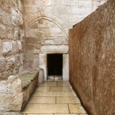 Am winzigen Haupteingang der Kirche aus dem 4.Jahrhundert war jedenfalls schon mal keine Schlange. Meine Vermutung, dass die Tür so niedrig ist, damit sich jeder beim Eintritt automatisch verbeugen muss, war nicht ganz richtig. Das war nur ein Nebeneffekt. Hauptgrund war, dass man damals (im 4.Jahrhundert) verhindern wollte, dass Kamele, Esel usw. in der Kirche ein- und ausgehen. Sagte jedenfalls der Guide (wenn ich ihn überhaupt richtig verstanden habe). Aber warum haben die dann nicht einfach eine Tür gebaut? Man sah jedenfalls, dass es durchaus mal ein größeres Portal gab, welches nachträglich verkleinert wurde. Meine Recherche ergab, dass die Kreuzfahrer die Pforte verkleinerten. Vermutlich zur besseren Verteidung der Kirche. Überhaupt war die Kirche von außen nicht unbedingt ’ne Schönheit und sah eher aus wie eine Festung.
