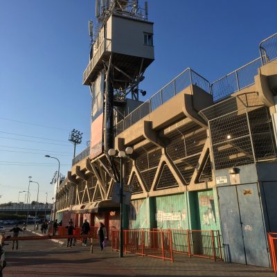 Von Florentin ging es nun durch das sozialschwache Nachbarviertel Shapira (das beherbergt auch den abgeranzten Busbahnhof) zum Shkhunat Hatukva Stadium. Das Stadion war lange Heimat des Erstligisten Bnei Yehuda Tel Aviv und ist daher relativ groß (über 6.000 Plätze), aber auch schon relativ abgerockt. Genau mein Ding also. Dumm nur, dass man durch die geschlossene Bebauung keinen Blick ins Innere erhaschen konnte und dass die Ordner mich nicht mehr reinlassen wollten. Ohne Ticket kein Einlass und Tickets werden nur bis zum Anpfiff verkauft, hieß es („We are so sorry, but it’s not permitted for security reasons“). Schade, denn es schallten bei Wiederanpfiff sogar Trommelrhythmen und Gesänge nach draußen. Maccabi Kabilio scheint als einer der ältesten Fußballclubs Israels und langjähriger Erstligist auch in der 3.Liga noch eine gewisse Fanbasis zu haben.
