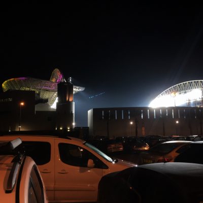 Während das Publikum mit Techno beschallt wurde, war es an der Zeit Kontakt zu meinen Freunden aufzunehmen. Auch sie fanden sich in dem Chaos vor’m Stadion nur schwer zurecht. Ole und Abt kamen reichlich verspätet über den Presseeingang herein und der Rest (Gulle und Max waren inzwischen aus Jerusalem dazugestoßen) wurde wie ich ein wenig durch die Gegend geschickt, kam aber erst zu jenem Kassenhäuschen bei dem ich Erfolg hatte, als die Rolläden gerade runtergingen. Der Ordner dort ließ sie gar nicht mehr zum Schalter durch. Auch hier galt, was ich heute Nachmittag schon zu spüren bekam; mit Anpfiff wird sofort der Ticketverkauf eingestellt. Gulle, Max und Schirm waren deshalb bereits auf dem Heimweg. Im Nachhinein hatte ich wohl echt Glück, dass ich vom Ordner zu den Kassenhäuschen diskussionsfrei durchgelassen wurde (my Hebrew is not so good…) und dann noch vor Anpfiff mein Ticket erstehen konnte.