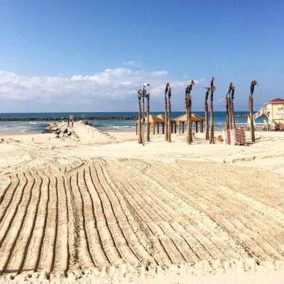 Am kommenden Morgen wurde so halbwegs ausgeschlafen und bei erneut strahlender Sonne gab es noch ein kleines Hummus-Frühstück am Strand. Kurz nach 9 Uhr machten wir uns auf den Weg Richtung Bahnhof und wollten die 3 km eigentlich mit zwei Taxis absolvieren. Doch in der Allenby Street witterte der Fahrer eines Sheruts anhand des Gepäcks unser Ziel, hielt an und brachte uns für je 6 Shekel zum Bahnhof. Gegen 10 Uhr waren wir am Flughafen und hatten die gewünschten drei Stunden Zeitfenster bis zum Abflug. Letztes Jahr hatten alle Kontrollen und Befragungen zusammen 2,5 Stunden gedauert und wir wollten nicht spekulieren, dass es beim zweiten Mal automatisch fixer geht.