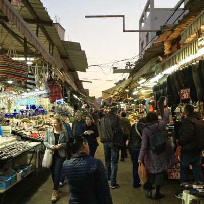 Von Jaffa spazierte ich dann am Strand entlang weiter in die Innenstadt. Ich machte auf dem Weg zum Appartement spontan noch Halt auf dem Carmel Market, was sich definitiv lohnte. Carmel ist das Basarviertel von Tel Aviv und auch wenn die Gegend keine 100 Jahre alt ist, hat sie doch die gleichen engen Gassen wie fast jeder orientalische Souk und diese herrliche Mischung aus Düften und Dezibel. Hier gab es Gemüse, Gewürze, Süßes, Fleisch, Stoffe, Kleidung und natürlich auch klassische Souvenirs, wovon ich gleich welche für die Familie kaufte.