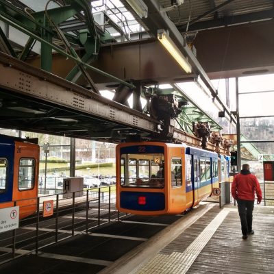 Selbstverständlich verschmähten wir alle Alternativen zur Schwebebahn in Sachen Transfer. Wenn wir schon zum an den Bahnstationen fleißig beworbenen „Westschlager – Der Löwe darf endlich wieder von der Leine“ extra nach Wuppertal kommen, müssen wir auch mit diesem berühmten Verkehrsmittel fahren. Vor 117 Jahren muss den Menschen diese einschienige Hängebahn wie eine Reise in die Zukunft vorgekommen sein. Der Kaiser fehlte 1901 natürlich ebenfalls nicht bei der Eröffnung dieses Meisterwerks deutscher Ingenieurskunst und passenderweise war heute der historische Kaiserwagen von damals auf Nostalgiefahrt unterwegs und passierte unsere mit Fussballfans prall gefüllte Bahn dabei.