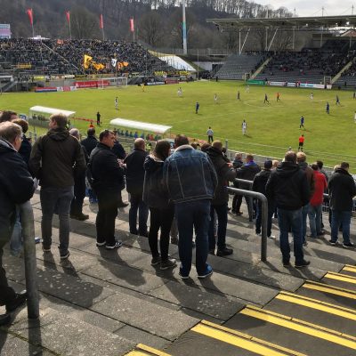Länderspielfreies Wochenende im Profifußball der Bundesrepublik Deutschland, jedoch keine guten Auslandsoptionen für einen Wochenendtrip. Also guckt man mal, was das Heimatland ab Liga 3 abwärts so hergibt. Die Wahl fiel auf das Duell der Traditionsvereine Wuppertaler SV und Alemannia Aachen im Wuppertaler Stadion am Zoo. Immerhin zwei ehemalige Bundesligisten, die immer noch viele Fans mobilisieren können. Dazu eine mir bisher nur von der Durchreise bekannte Großstadt (ca. 350.000 Einwohner, siebzehntgrößte Stadt Deutschlands) und ein großes unbesuchtes Fußballstadion (23.067 Plätze). Mit Languste, Olbert, Ole, Max und mir war schnell ein Schönes-Wochenende-Ticket personell ausgelastet und morgens am Bahnhof staunte ich nicht schlecht, dass jenes Ticket mittlerweile 68 € kostet. Da hätten wir doch auch Auto fahren können und dann vor allem nicht nur um 14:00 Uhr WSV gegen Alemannia geschafft, sondern die Heimspiele von Westfalia Herne um 16:30 Uhr und Sportfreunde Siegen um 19:30 Uhr wären ebenfalls drin gewesen. Olberts tödlicher Blick war es wert dieses Groundhopper-Gedankenspiel laut auszusprechen.