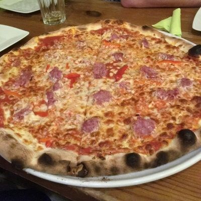 Wir spazierten nach Abpfiff vom Stadion zur nächstbesten Bahnstation und fuhren mit der Tram ins Zentrum von Katowice. Alt sollten wir heute allerdings nicht mehr werden. Es wurde lediglich noch der Hunger in einer Pizzeria gestillt. Rund 8 € waren für eine leckere Riesenpizza (40 cm Durchmesser) mit Paprika und Salsiccia im Basiliana zu löhnen.