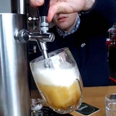 Ostrava-Vitkovice war auch unsere fußballerische Destination heute, aber davor waren Hunger und Durst zu stillen. Auserwählt wurde die Dependance der bierigen Erlebnisgastronomiekette The Pub (bestens bekannt durch Besuche in Prag und Pilsen). Der Bierpreis liegt zwar über dem ortsüblichen Durchschnittspreis, aber dafür darf man selber am Tisch zapfen und seine Fortschritte auf seinem Display verfolgen. Etwas über 8 Liter Pilsener Urquell tranken wir in den kommenden 90 Minuten und hatten dafür rund 25 € zu entrichten. Außerdem konnte man über das Display bequem Schnaps ordern, was zu zwei Runden Slivovice animierte (4 cl für 1,80 €).