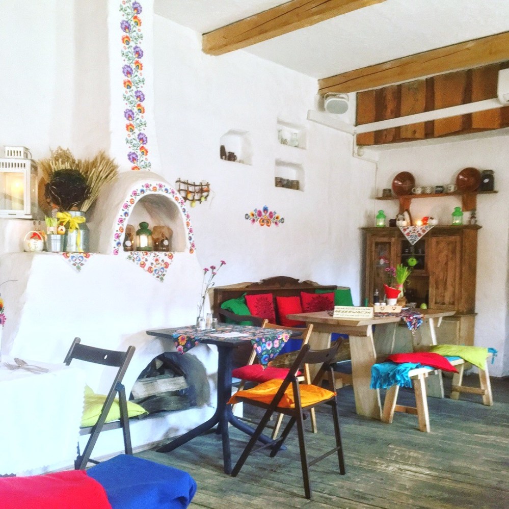 Dazu hatte ich das Wiejska Chatka herausgesucht. Hier hat man quasi ein gemütliches altes polnisches Landhaus ins Hochpaterre eines Plattenbaus gebaut. Weil das Frühstück entfiel, konnten wir mittags guten Gewissens gleich richtig zulangen. Also erstmal vorweg eine traditionelle Brotsuppe mit ordentlich geriebenem Knoblauch und Bratkartoffeln darin. Auch Brot mit hausgemachtem Gänseschmalz wurde zu Beginn gereicht. Danach gönnte sich jeder 10 Pierogi mit Fleischfüllung.