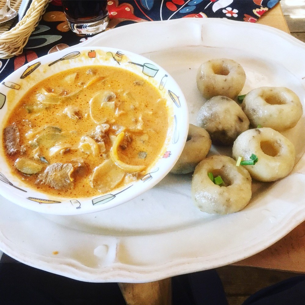 Der Hauptgang war dann unterschiedlicher Art. Ole und der Abt hatten Beef Tenderloin Steaks mit gegrilltem Gemüse und Kartoffelecken gewählt. Max nahm eine Rinderroulade mit Kartoffeln und Klößen und ich entschied mich für Boeuf Stroganoff mit schlesischen Klößen. Wirklich alles von vorne bis hinten einwandfrei. Für ein Dessert war komischerweise bei niemandem mehr Platz. Dennoch kamen wir mit zwei Getränkerunden nur auf knapp 75 € Rechnungssumme.