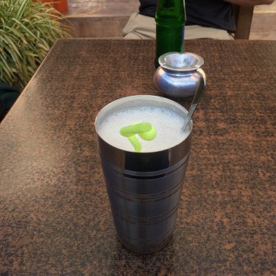 Von Samstag auf Sonntag war das Konouz wie eingangs erwähnt leider ausgebucht, aber der Abt hatte als Alternative das Riad Maissoun herausgesucht. Doch bevor wir nach dem Check-Out die Unterkunft wechselten, reichte der Gin noch für zwei Longdrinks pro Mann auf der Dachterrasse. Ins neue Riad konnten wir eh erst ab 14 Uhr und zwei Stunden mit Gepäck durch Marrakesch laufen ist auch doof.