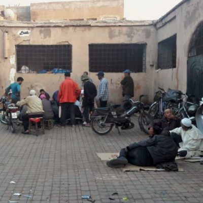 Die erste Episode als Flaneure in Marrakesch, die unter anderem zum Mausoleum des Stadtheiligen Sidi Abdul al Aziz führte, hatte eigentlich das Restaurant Le Jardin als Ziel. Doch die teure, aber angeblich lohnenswerte Adresse, sollte man nur mit Reservierung aufsuchen, wie wir feststellen durften. Also ließen wir uns weiter treiben und sinnierten nach wie vielen Metern man wohl eine Alkoholvergiftung bekommt, wenn man für jedes „Hello, my friend“-Angequatsche einen Schnaps trinken muss. Ich denke mal untrainierte Lebern bleiben zweistellig, gute Trinker schaffen eine dreistellige Meterzahl.