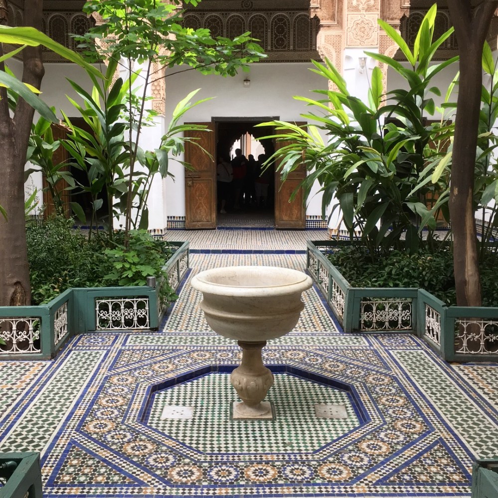 Mitte des 19.Jahrhunderts wurde der Bahia (zu deutsch in etwa „Die Strahlende“) im Auftrag des Großwesirs Si Ahmed ben Musa gebaut. 160 Zimmer hat die 8.000 m² große Anlage. Viel Platz, den der sexuell nicht untätige Großwesir für seine vier offiziellen Ehefrauen, mehrere dutzend Haremsdamen und unzählige Nachkommen natürlich auch benötigte. Sie alle durften sich an den Mosaiken, Fayencen, Arabesken und Zedernholzschnitzereien erfreuen, die den Palast zu einem Traum aus 1001 Nacht machen.