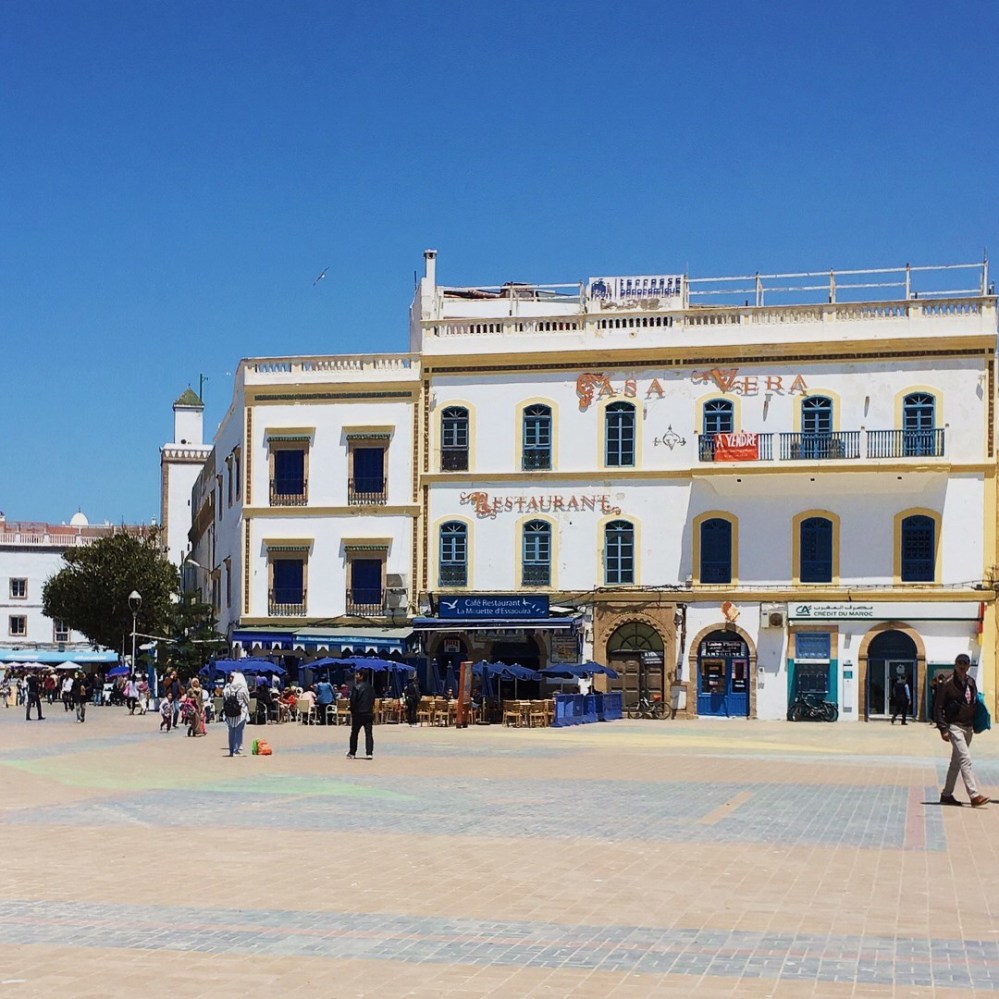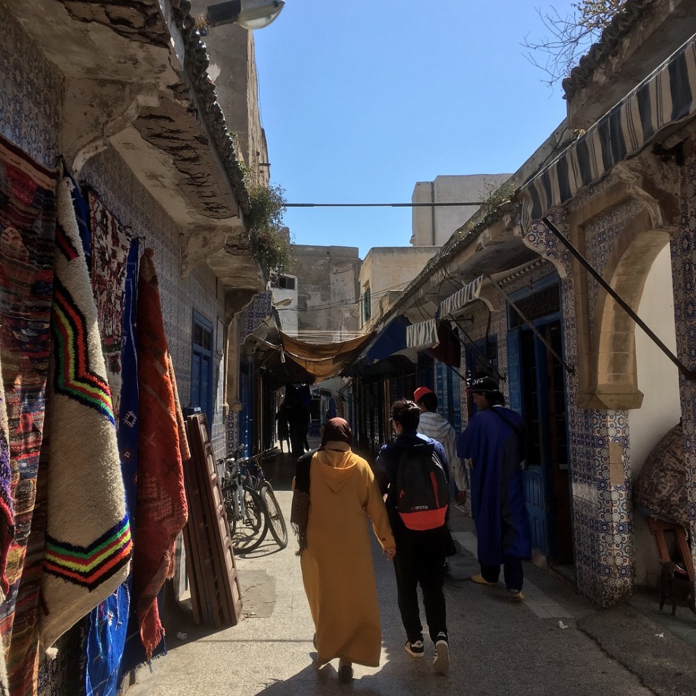 Doch nun zurück in die Gegenwart. Auch wenn sich Portugals Herrschaft über Essaouira nur über wenige Jahrzehnte erstreckte, wirkt die Altstadt irgendwie stark portugiesisch. Nicht nur die Festung Mogador, sondern auch die weißen Häuser könnten problemlos auch an der Algarve stehen. Dazu sind die Straßen in der Medina symmetrisch angeordnet. Auch total untypisch für Marokko. Essaouira war wirklich ein starker Kontrast zu Marrakesch. Beide Städte sind wunderschön, doch Marrakesch wirkt wie aus 1001 Nacht, während Essaouira wie angedeutet sehr mediterran ausschaut. Natürlich bummelten wir ein wenig durch den Souk, ließen uns von Möwen vollscheissen und von Krämern volllabern.