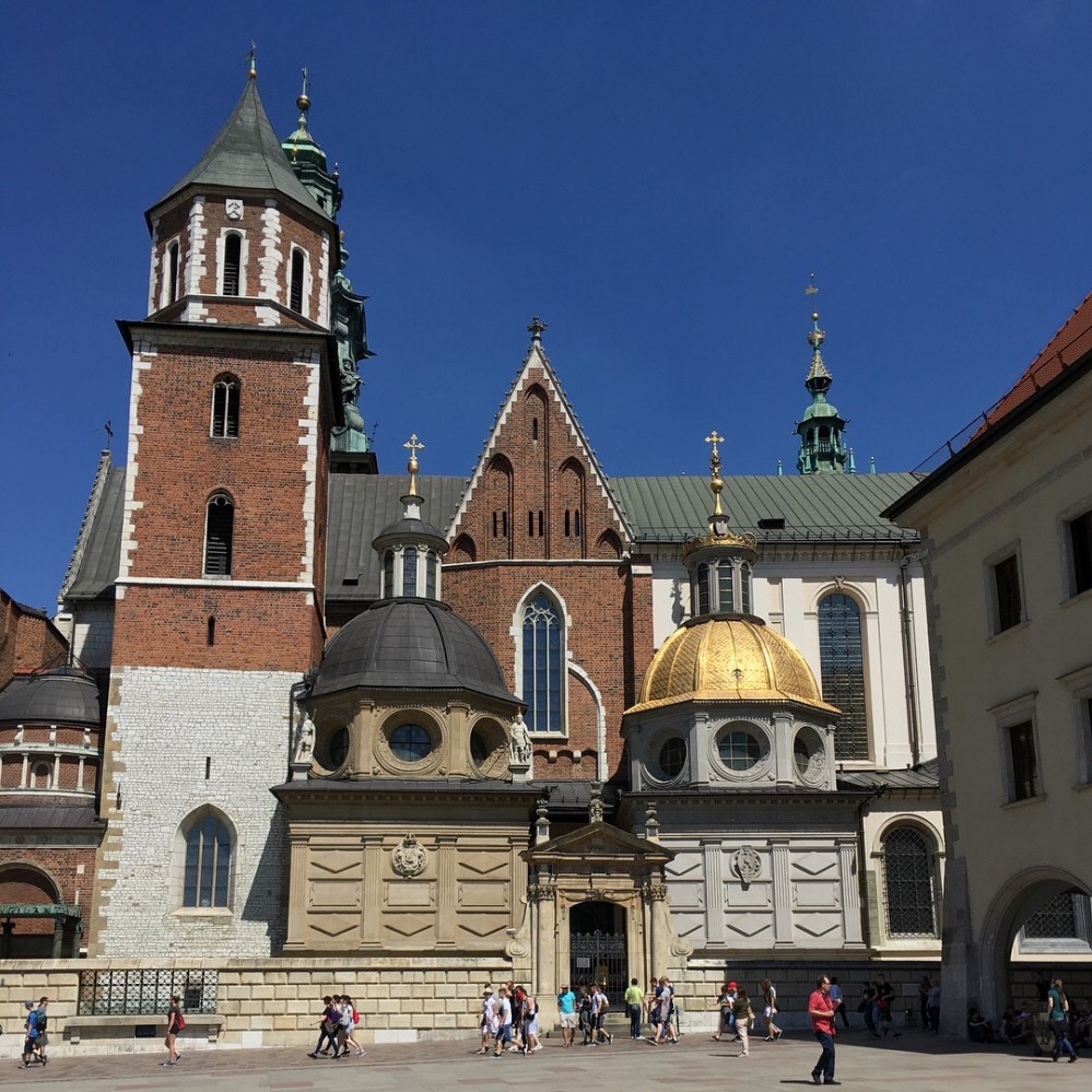 Prinzipiell könnte ich schon jetzt den Text mit Schilderungen, kleinen Entdeckungen und geschichtlichen Vorträgen zukleistern, aber das hebe ich mir für den definitiv kommenden nächsten Kraków-Besuch auf. Daher fasse ich mich auch kurz bei der Darstellung unseres nächsten Ziels, dem Wawel. Dort residierten einst die Könige Polens und wir ließen uns von einer riesigen Burganlage, malerisch auf einem Hügel (228 m ü. NN) an der Wisła (Weichsel) gelegen, in den Bann ziehen.