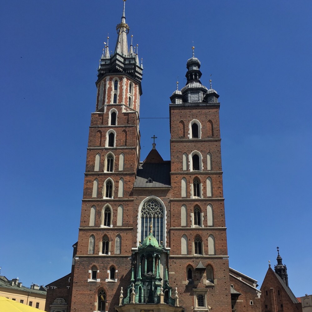 Die Barbakane hier war dem Brama Floriańska (Florianstor) vorgelagert, welches wir nun durchschritten, um die Altstadt zu betreten. Wir waren sogleich auf der Sichtachse der bis zu 81 Meter hohen Bazylika Mariacka (Marienkirche). Über die Straße Florianska steuerten wir auf diese prächtige Kirche zu. Als das sakrale Meisterwerk erreicht war (Tipp: unbedingt reingehen und das Innere bewundern), befanden wir uns in der Nordostecke des Rynek Główny (Hauptmarkt).