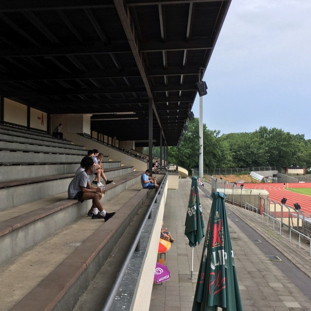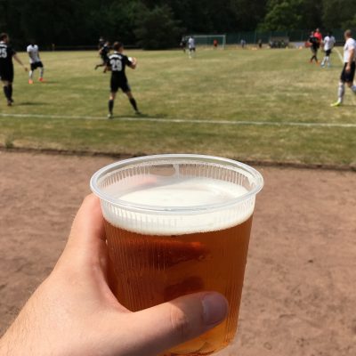 Nach unserem Umstieg am Hauptbahnhof erreichten wir die Julius-Hirsch-Sportanlage von Makkabi planmäßig zur 15.Spielminute. Verpasst hatten wir nichts, es stand noch 0:0. War wie am Vortag „nur“ 6.Liga und das Klima war gefühlt noch sportfeindlicher als gestern. Kann kein Geschenk gewesen sein hier in der Mittagshitze rumzulaufen und so sahen wir zusammen mit 40 weiteren Zuschauern ein sehr chancen- und tempoarmes Spiel.