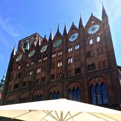 Es gab für uns einige Gebäude der Backsteingotik zu bewundern. Allen voran den Dom Sankt Nikolai und die beiden anderen mittelalterlichen Großkirchen Sankt Marien und Sankt Jacobi. Am Marktplatz sind außerdem schöne Giebelhäuser in diesem Architekturstil zu finden. Überhaupt ist der Marktplatz sehr interessant. Er ist wirklich riesengroß und das Rathaus ist zwar nicht im Zentrum platziert, aber dennoch freistehend.