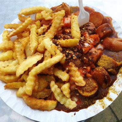 Beim 2:0 durch Muhammed Kiprit (35.) war ich dann gerade am Imbissstand und orderte mir Berliner Currywurst mit Pommes. Eine Gemeine Wespe stürzte sich anschließlich im Biergarten in das mit Chili und Zwiebeln gepimpte Essen (übrigens faire 6 € für eine große Portion), fand aber keinen Geschmack daran und warnte wahrscheinlich auch noch die Artgenossen. Jedenfalls durfte ich fortan in Ruhe essen, während die Softdrink- und Eis-Vertilger in meiner Nachbarschaft keinen Frieden mit den Plagegeistern machen konnten.