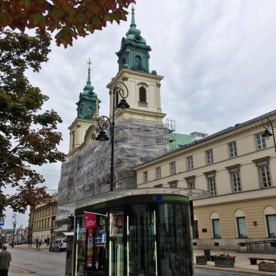 Aus dem MDM-Viertel ging es anschließend nordwärts Richtung Altstadt. Natürlich den Trakt Królewski (Königsweg) und somit die Ulica Nowy Świat und die Krakowskie Przedmieście entlang, so dass ich vielen beeindruckenden Gebäuden begegnete. Gerade die Krakowskie Przedmieście ist die Prachtstraße Warszawas. Auf überschaubarer Länge findet man hier zunächst die Polska Akademia Nauk (Polnische Akademie der Wissenschaften) mit dem Kopernikus-Denkmal davor, sowie die leider aktuell eingerüstete dreischiffige Bazylika Świętego Krzyża (Heilig-Kreuz-Basilika). Das ist Warszawas größte Barockkirche, in der das Herz des berühmten polnischen Komponisten Chopin* aufbewahrt wird.