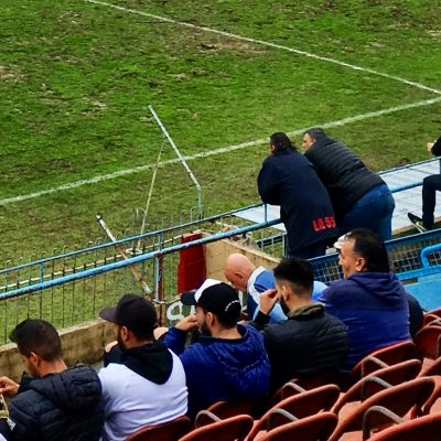 Auf der Haupttribüne war es aber ganz entspannt und wirklich niemand interessierte sich für uns. Die kleine Barra hatte schöne Fahnen dabei und begleitete ihre Gesänge mit Blasinstrumenten. In unserem Sektor guckten derweil tatsächlich fast alle Besucher 96 % der Spielzeit auf das Feld. Bei der Darbietung, auf einem Acker in unterirdischem Zustand, eine respektable Einstellung. Gab es überhaupt Torchancen in diesem Spiel? Ich kann mich an keine erinnern. Ergo 0:0 nach 45 Minuten und 0:0 nach 90 Minuten.