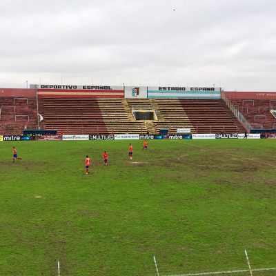 Dafür ist das Stadion eine echte Perle, wenn man denn auf alte Schüsseln steht. In den 1980er Jahren dürfte es zusammen mit dem damaligen wie heutigen Nutzer seine beste Zeit gehabt haben. Ab 1985 spielte der Club Deportivo Español 14 Jahre am Stück erstklassig und schaffte sogar dreimal den 3.Platz in der Meisterschaft (zuletzt 1992). Nach dem Abstieg aus der 1.Liga begannen jedoch turbulente Zeiten. 2003 ging es in die Drittklassigkeit und der Club war wenig später bankrott und wurde liquidiert. Einer Neugründung im selben Jahr wurde vom Fußballverband AFA die historische Kontinuität zugesprochen und seit 2014 spielt man wieder drittklassig.