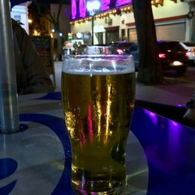 So ungefähr fünf Minuten nach Abpfiff wollten wir dann los, doch alle Heimbereiche hatten eine Blocksperre. Erst sollten die Gästefans mit Bussen weggekarrt sein, bevor grün-weiße Fans den Heimweg antreten durften. Nach rund 30 Minuten war dies der Fall und wir machten uns mal auf die Suche nach Taxis. Die blieb erfolglos, so dass wir beschlossen zunächst noch in ein Lokal auf einen Mitternachtssnack einzukehren. An der Hauptstraße, wo wir uns auch vor dem Spiel aufhielten, wirkte das Juancito einladend. Es war gut gefüllt mit Banfileños und wir schnappten uns einen letzten freien Tisch in deren Mitte. Nun gab es Bier (ca. 2 € der Liter) und Pizza (ca. 5 €) für alle.
