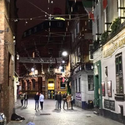 Nachdem Jamie mit seinem „Allez, allez, allez“ ein letztes großes Brodeln im Publikum ausgelöst hatte, war um 23 Uhr Last Order. Das war eine sehr feine Stunde Fan- und Pubkultur, die wir hier verbringen durften. Dann ging es mit einem Taxi in die Innenstadt. Tommys Stiefsohn verabschiedete sich bereits, doch Tommys morgige Arbeitszeit war immerhin noch flexibel genug, um noch auf ein, zwei Pints mitzukommen.