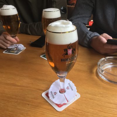 Über fünf Stunden am Flughafen rumhängen ging natürlich gar nicht und wir stöberten im Internet nach Kneipen in der Nähe. Ah, das Marktstübchen in HH-Langenhorn ist nur 2,5 km entfernt und öffnet um 11 Uhr. Auf dem Weg zur Pinte haben wir uns selbstverständlich überlegt, wem wir die Schuld für den verpassten Flug in die Schuhe schieben können. Doch wie man es dreht oder wendet, haben wir einfach ganz allein verbockt und letzlich ist das natürlich auch kein Weltuntergang gewesen. Ich will nicht philosophisch oder moralisch werden, aber es gibt auf dieser Welt so viele ernste Probleme und Dramen, da braucht man sich wirklich nicht lange mit einem verpassten Flug und bescheidenen Mehrkosten im niedrigen dreistelligen Bereich aufhalten. Also die nächsten Stunden Spaß gehabt und viel gelacht. Langenhorn statt Liverpool, Holsten Edel statt English Ale.
