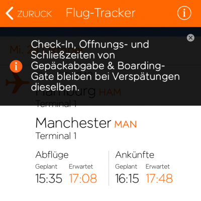Wir erlaubten uns unterdessen den Spaß ein Foto unserer ersten Bierrunde in den Touri Chat (virtuelle Plattform meines Freundeskreises) mit der Unterschrift „Der Pubcrawl beginnt. Es gibt hier sogar Holsten!“ zu stellen. Reaktionen gab es leider zunächst keine, doch später erfuhren wir, dass sich die meisten Leute gedacht haben „Sind die blöd geworden? Warum trinken die Holsten in England?“ Der nächste Kracher des Tages kam in Form einer Nachricht von Easyjet. Es tat ihnen leid uns mitteilen zu müssen, dass unser Flug sich um voraussichtlich ca. 96 Minuten verspäten wird. Ja ja, tut uns auch leid, ihr *piep*. Sind wird also erst so gegen 18 Uhr Ortszeit in Manchester und wahrscheinlich nicht vor 20 Uhr in Liverpool. Wir wurden selbstständlich nebenbei schon die ganze Zeit virtuell von Scouser-Tommy hochgenommen (Banter kann er gut) und lieferten ihm mit der Verspätung und unserer weiteren Planung die nächste Steilvorlage.