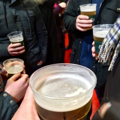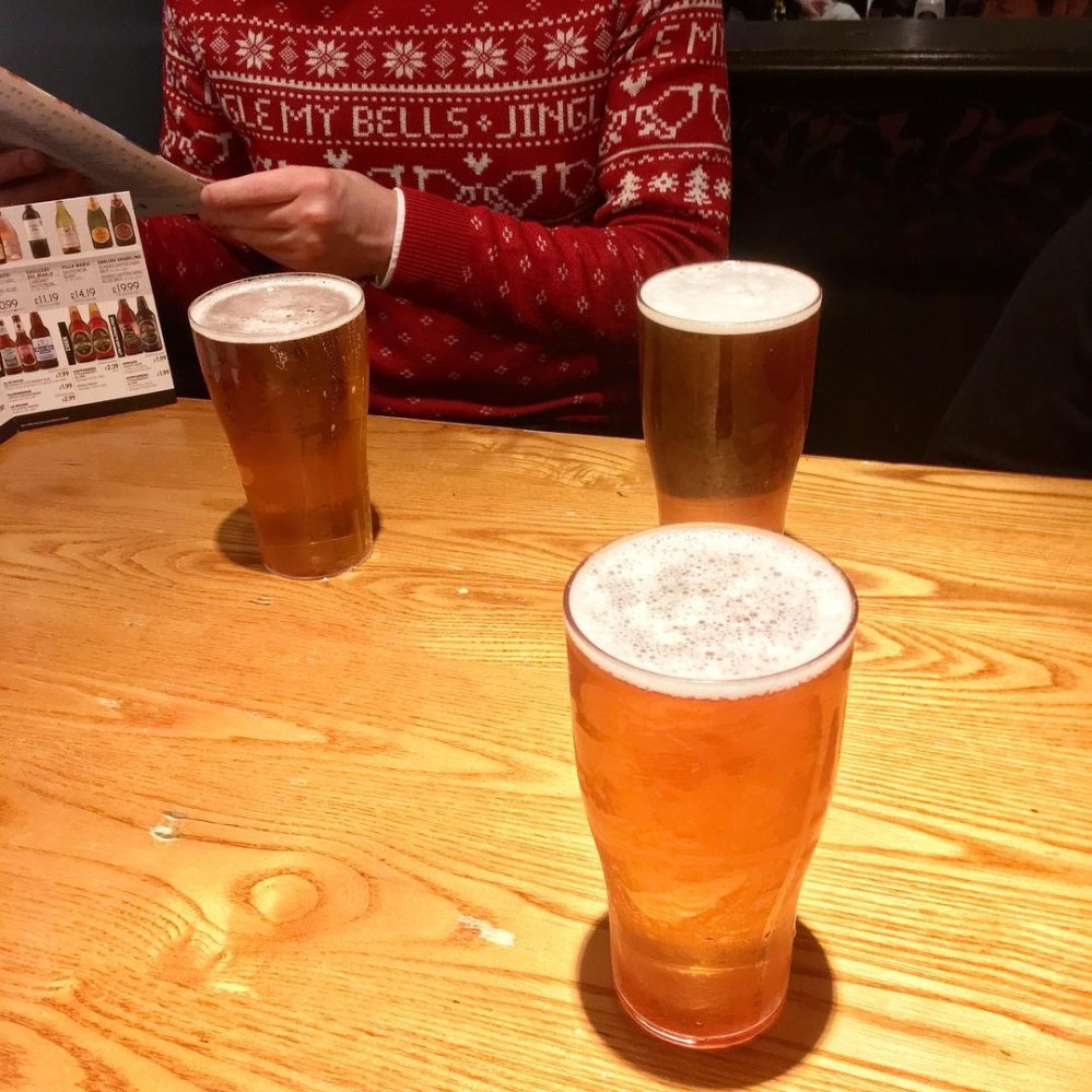 Bereits kurz nach 20:00 Uhr waren wir an der Liverpool Street. Meine Prognose, dass London sich zwischen Crimbo und NYE verhältnismäßig ’ne Ausgeh-Auszeit gönnt, bewahrheitete sich. Zum ersten Mal seit Jahren bekamen wir im Pub Hamilton Hall an einem Freitagabend gegen 20 / 21 Uhr auf Anhieb einen Tisch. Dafür funktioniert in dieser Filiale von Wetherspoon’s die Order & Pay App noch nicht, so dass man sich selbst bewegen musste, um an seine Kalorien via Bier und Burger zu kommen. Gibt Schlimmeres!