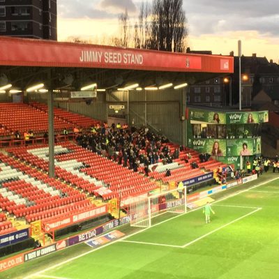 Vielleicht ist dem gereiften Lee Bowyer nun eine große Trainerkarriere ohne Schandflecken vergönnt. Bei seiner ersten Station läuft es jedenfalls bisher gut und bis zur Halbzeit brannte auch beim heutigen Spiel nichts mehr an. Nach dem Seitenwechsel dagegen pennte sein Team einen Moment und die Gäste konnten in der 47.Minute durch ihren Mittelstürmer Andy Cook den Anschlusstreffer erzielen. Da machte sich auch endlich mal das bescheidene Häufchen Gästefans bemerkbar.