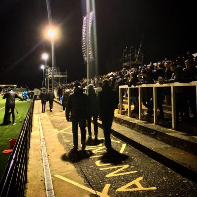 Weil das heutige Lokalduell gegen Sutton United als Topspiel auserkoren wurde (beide Teams kommen aus Südlondoner Bezirken), kickte man exklusiv um 19:45 Uhr. Logischerweise sah es dabei auf den Traversen zum Teil nach Groundhopper-Kongress aus. Mindestens 50 weitere Touristen aus der Kraut- und Kartoffelrepublik waren zugegen (viele davon hatten wir auch schon bei Charlton Athletic identifiziert), von denen man sich aber keine Konversation aufzwingen ließ. Stattdessen wurde zwischen den Locals ein halbwegs brauchbarer Kick geguckt.
