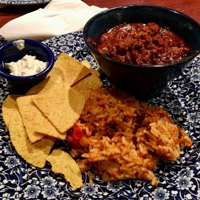 Ole gönnte sich sein Leibgericht Chicken Tikka Masala, Max dagegen Fish & Chips. Sein Cod war so goldgeld gebacken, dass ich tatsächlich von einer Hülle aus Blattgold ausging und Ausschau nach Franck Ribéry hielt. Meiner einer bekam wiederum den Hals nicht voll und bestellte zwei Essen zum Preis von einem. Das waren einmal ein Steak & Kidney Pie mit Beilagen und einmal Chili con Carne mit Reis und Nachos (zusammen 9.49 £). Wie rechtfertigte ich mich doch gleich vor der skeptisch servierenden Kellnerin? „Yes, both are for me. I’m blessed with a good appetite!“