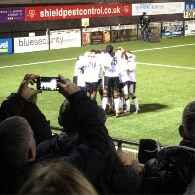 Der Gast aus der Nachbarschaft (aktuell 8.Platz, aber dank engem Tableau Teil des Aufstiegskampfes) hatte ungefähr 150 der 1.428 zahlenden Zuschauer mitgebracht und erwischte den besseren Start. In der 11.Minute gingen sie durch ein Tor von Kenny Davis in Führung. Bromley, zur Zeit als Siebzehnter nur mit einem 6-Punkte-Polster zur Abstiegszone ausgestattet, schlug allerdings noch vor der Pause zurück. In der 33.Minute traf mit J. J. Hooper eine Sturmleihgabe aus Grimsby (4.Liga) zum Ausgleich.
