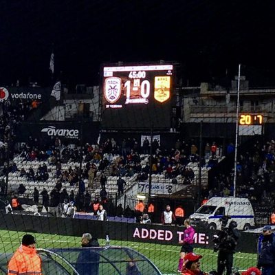Das Publikum nahm das 1:1 im Derby auch recht gefasst hin und ging friedlich nach Hause. Wir machten ebenfalls einen Nachtspaziergang durch Thessaloniki und erreichten eine Stunde nach Abpfiff unser Hotel. Heute wollte jeder zeitig schlafen und am nächsten Morgen sollte es bereits um 7:04 Uhr zurück nach Athen gehen. Thessaloniki sieht mich aber bestimmt nochmal wieder. Die Szene von Aris möchte ich auch gerne mal in Aktion sehen und mit Iraklis und Apollon Pontou gibt es außerdem noch zwei weitere Proficlubs in der Stadt. Letztere hatten heute Nachmittag sogar auch ein Heimspiel, aber die Sehenswürdigkeiten der Stadt genossen natürlich Priorität. Wir sind schließlich keine Groundhopper!