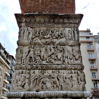 Galerius wurde 293 n. Chr. von Kaiser Diokletian zum Caesar (Juniorkaiser im Rahmen der damaligen Tetrarchie) für den Ostteil des Römischen Reiches erhoben und residierte in Thessaloniki. Damals war das Römische Reich noch nicht in Ost und West geteilt (das geschah erst 395 n. Chr.), aber Diokletian hatte erkannt, dass das Reich zu groß geworden war, um es von einem Kaiser in Rom zu kontrollieren. Deshalb ersann er sein Vier-Kaiser-Modell mit zwei Seniorkaisern (er und Maximian) und zwei Juniorkaisern (Galerius und Konstantin). Als die Perser im Jahre 297 die Ostgrenze des Römischen Reiches bedrohten, besiegte ein Heer unter der Führung von Galerius 298 den Perserkönig Narseh. Dafür erhielt Galerius von Seniorkaiser Diokletian die Erlaubnis für den Bau eines Triumphbogens in Thessaloniki; den Galeriusbogen.